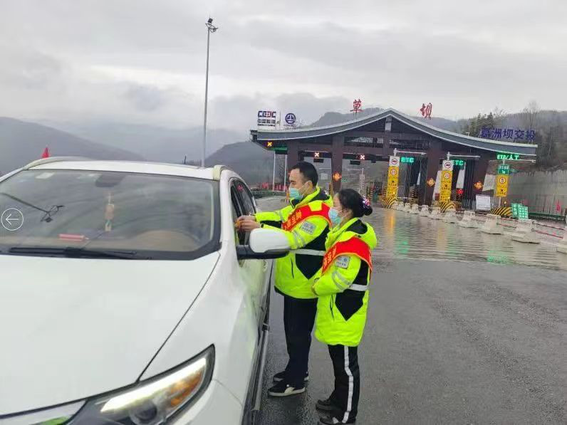 巴萬高速團(tuán)支部兩位團(tuán)員在雨中為過路司乘分發(fā)《通行指南》,協(xié)助解決道路事故等突發(fā)情況,為保通保暢貢獻(xiàn)青春力量。