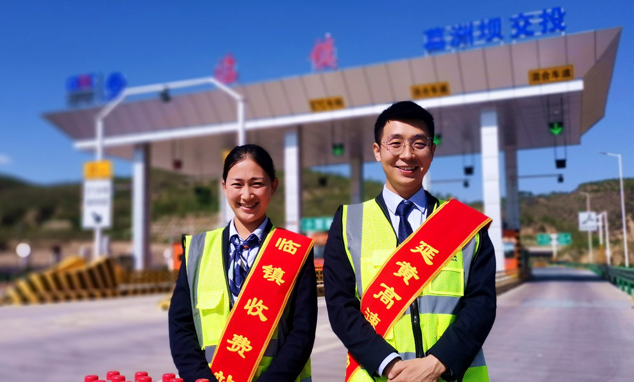 延黃高速臨鎮(zhèn)收費(fèi)站兩位收費(fèi)人員帶著綬帶,在炎熱天氣下熱情地為過往司乘送上礦泉水,緩解暑氣。