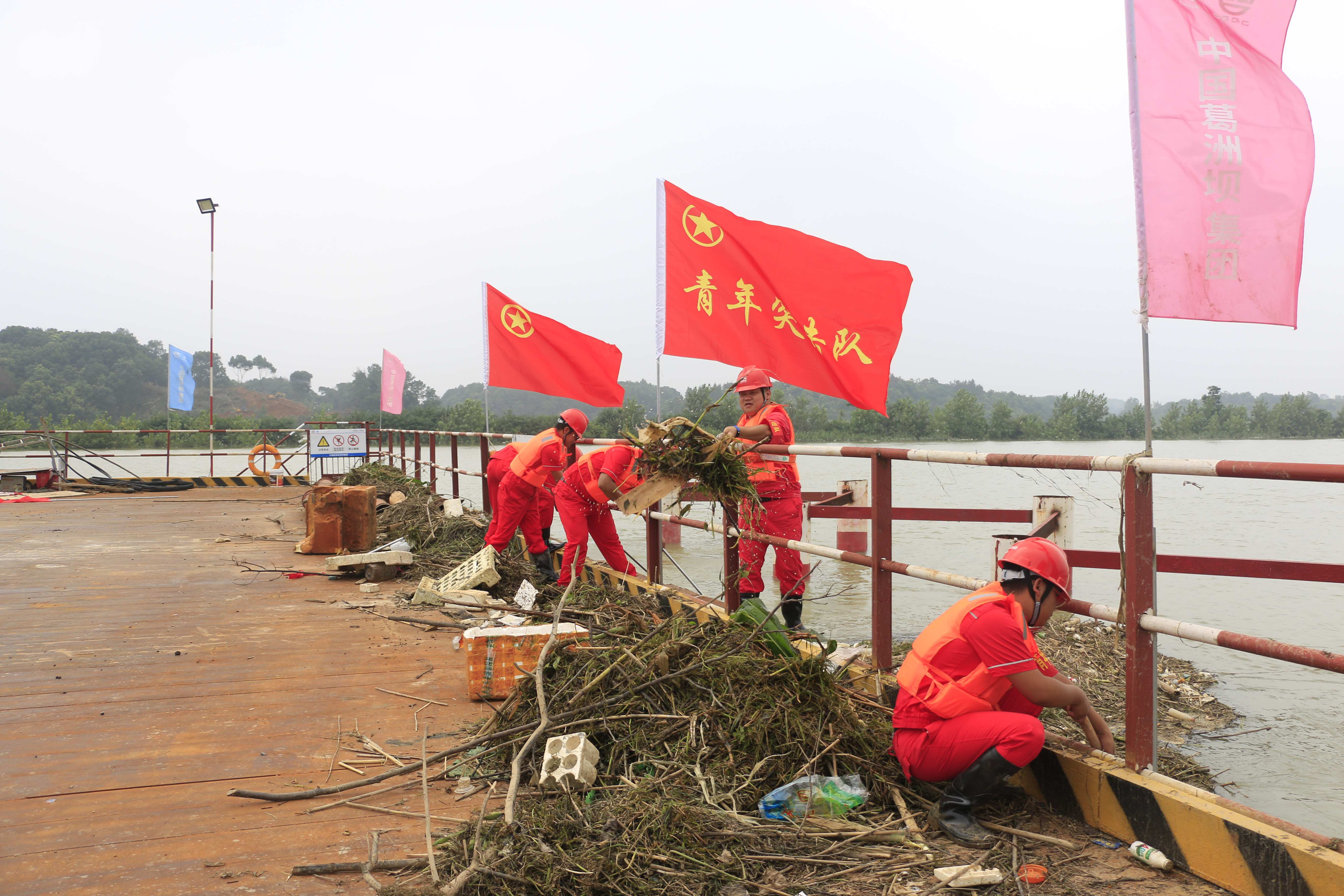 7月6日上午8時(shí),富水河特大橋鋼棧橋施工現(xiàn)場(chǎng)水位上漲迅猛,水流湍急,施工安全受到不利影響。項(xiàng)目部立即啟動(dòng)抗洪搶險(xiǎn)應(yīng)急預(yù)案,嚴(yán)格實(shí)行領(lǐng)導(dǎo)帶班和24小時(shí)值班制度,為抗洪搶險(xiǎn)斗爭(zhēng)勝利贏得工作主動(dòng)性。駱軍成穿上救生衣,拿起手電筒,開始夜間值班。